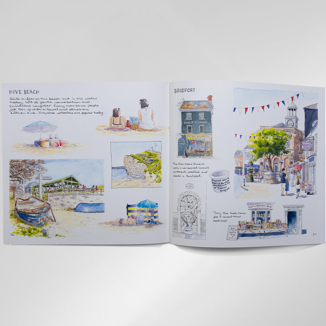Sketches of the Dorset Coast is a visual diary by Dorset-born artist Lisa Layton. Inside, you’ll discover a curated collection of watercolour sketches and drawings that capture moments in time—celebrating the region’s iconic landmarks, beaches, towns, and villages from Studland to Lyme Regis.