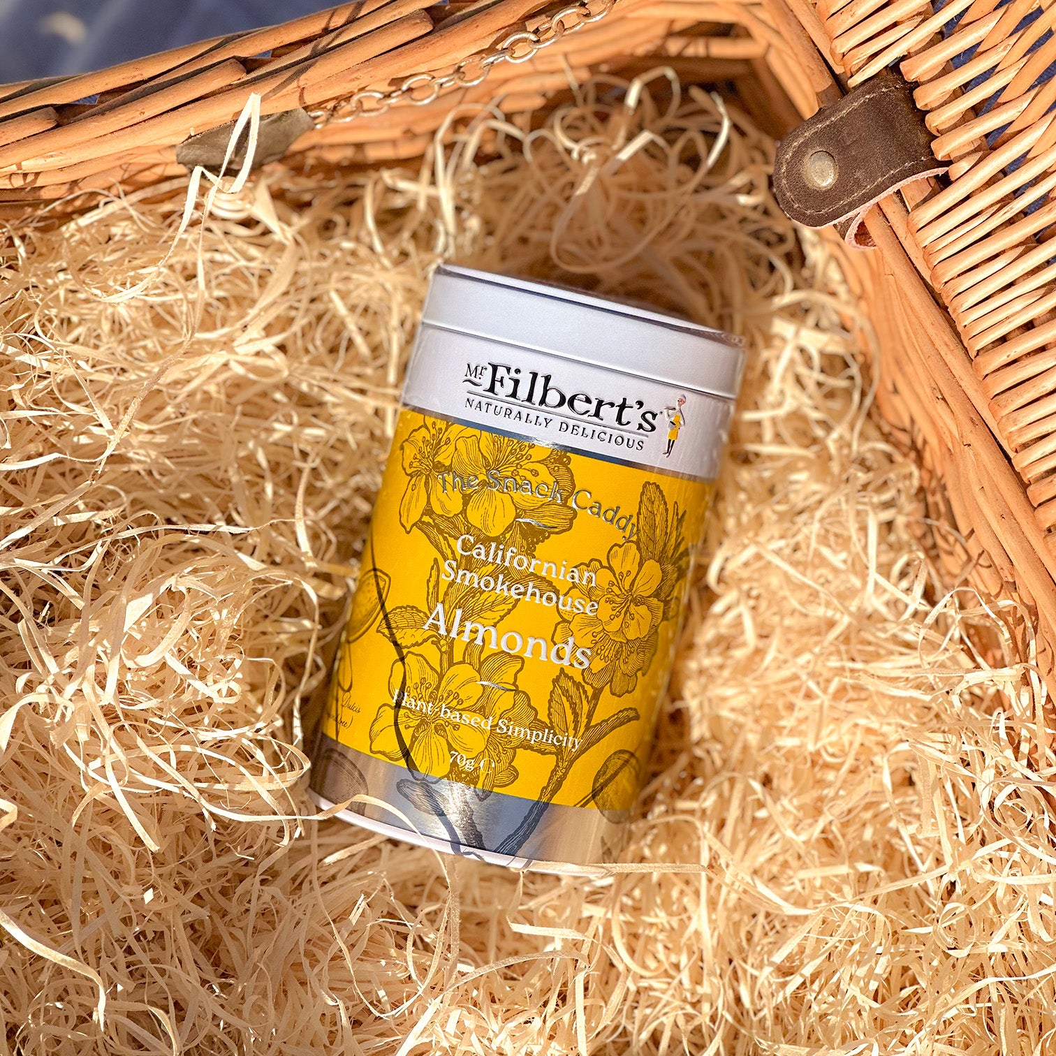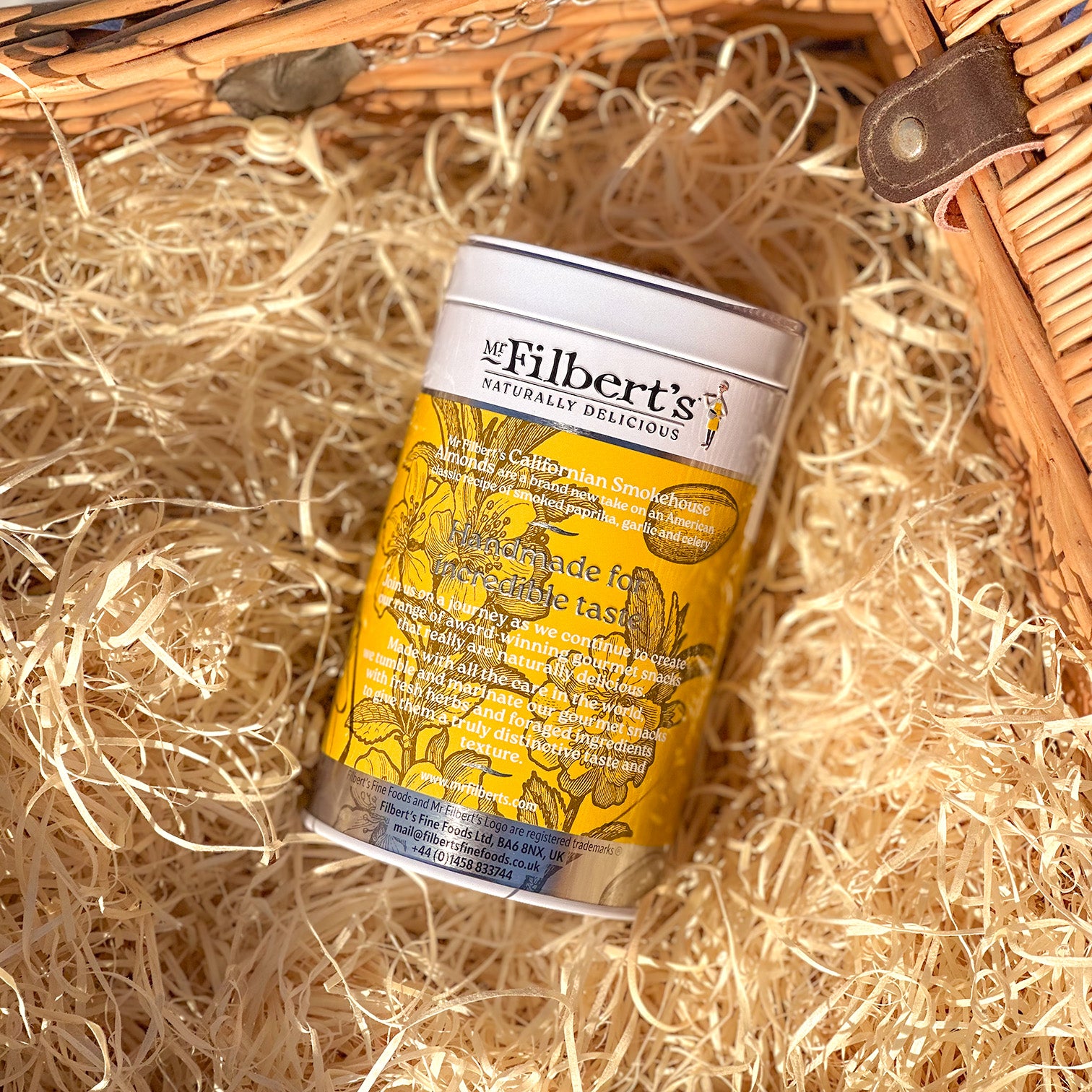 Indulge someone special with the irresistible taste of Mr Filbert’s Californian Smoked Almond nuts in a tin.
