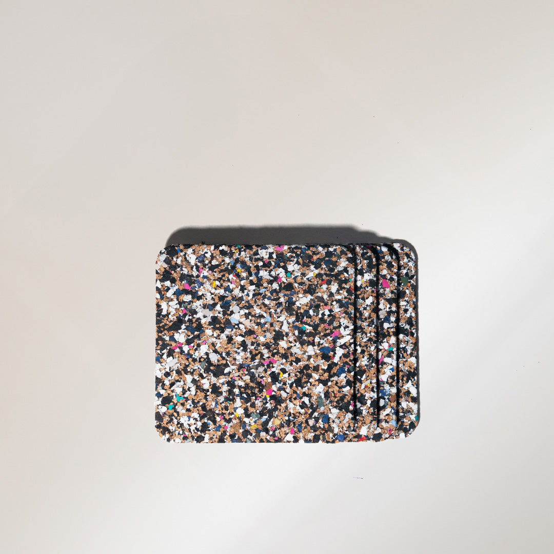 Pack of 4 Square Coaster Measurements: 10 x 10 x 0.2 cm Due to the use of recycled EVA plastics, these mats are not heatproof.