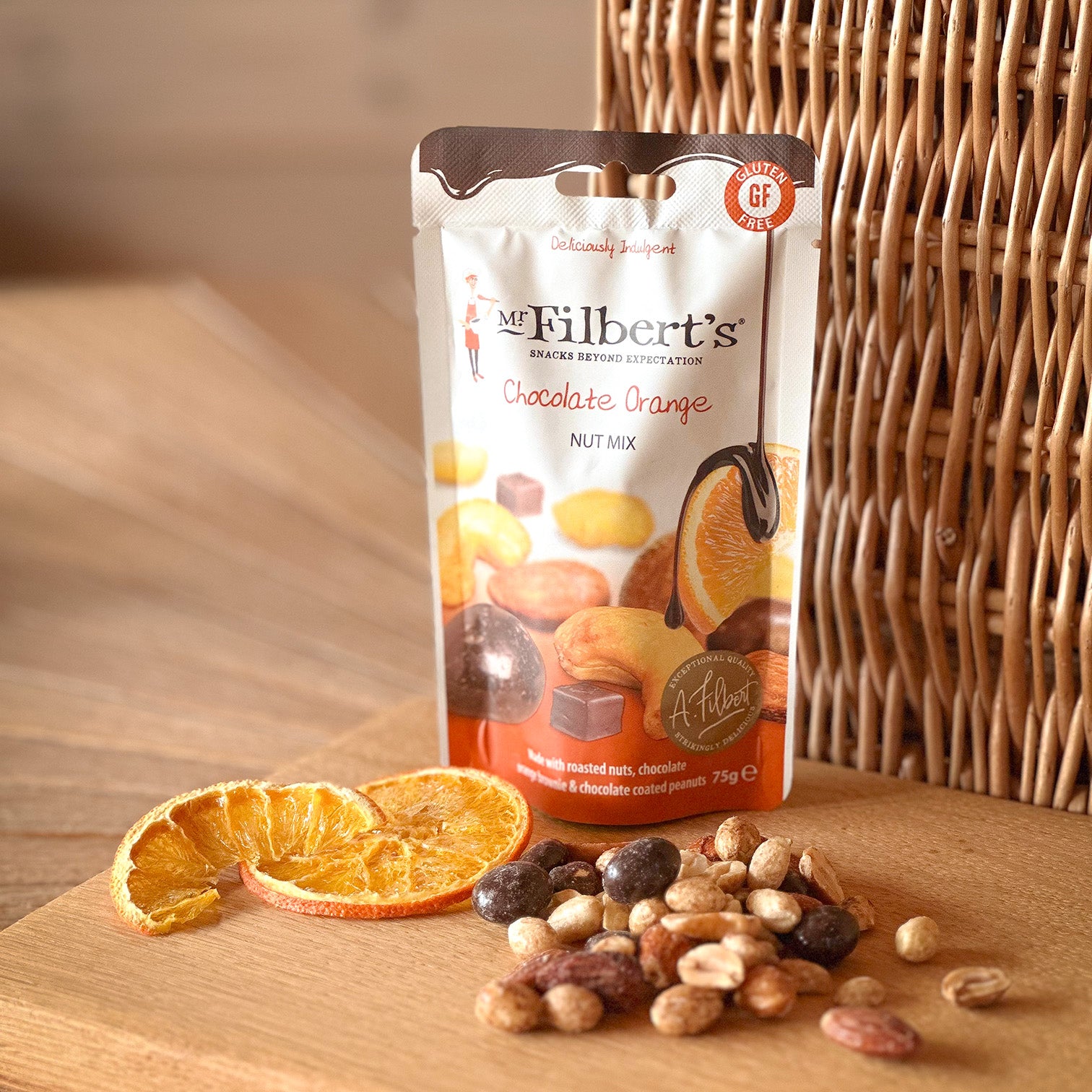 A little luxury for life's spontaneous moments. This perfectly portioned mix brings together premium roasted nuts with the timeless pairing of rich chocolate and zesty orange – a symphony of indulgence that fits right in your pocket.